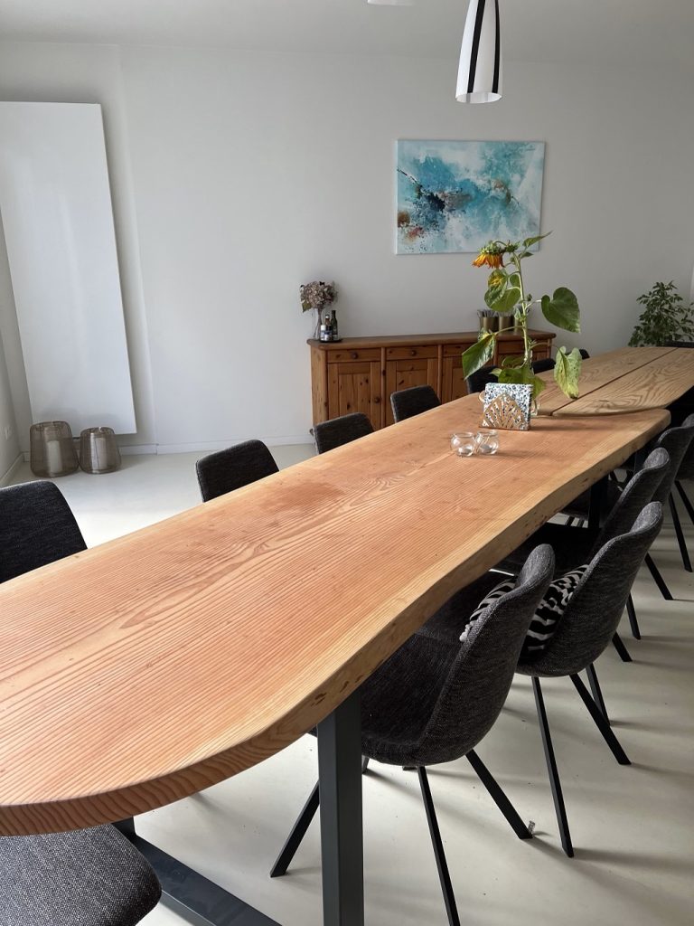 De Tuinkamer is onze coworkingspace en eetplaats, en kan apart gehuurd worden als je tafels en stoelen wil gebruiken en als uitbreiding van de aanpalende Living.